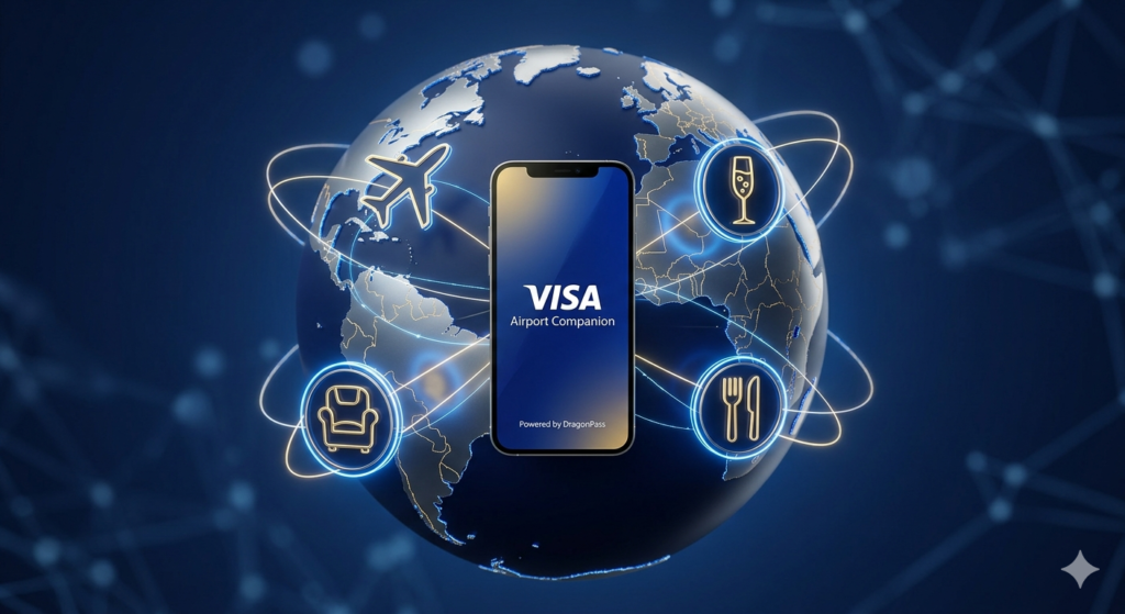 O Visa Airport Companion é uma plataforma digital de benefícios em aeroportos, exclusiva para portadores de cartões Visa (principalmente nas variantes Infinite e Signature). Diferente de outros programas que são apenas “agregadores”, o VAC funciona como um ecossistema completo gerido pela infraestrutura da DragonPass.